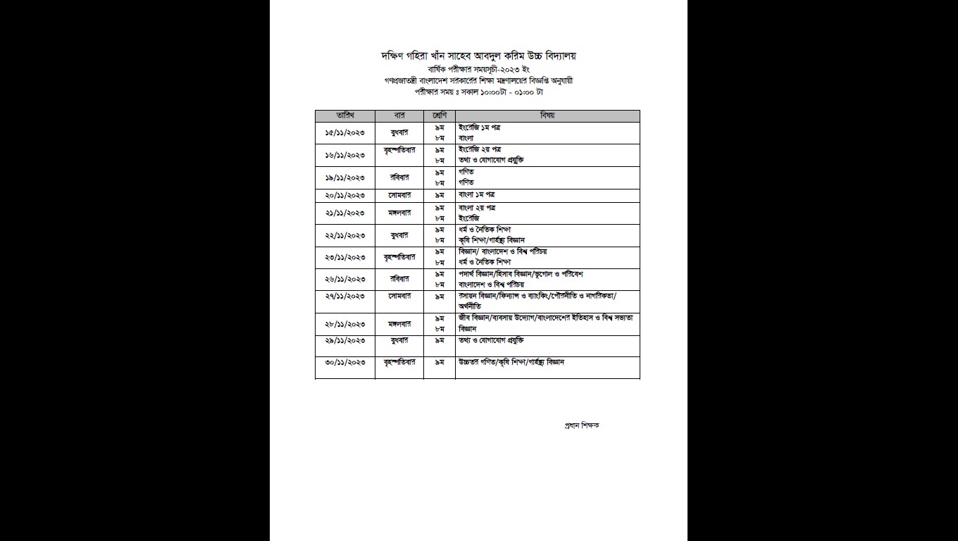 ৯ম শ্রেণির বার্ষিক পরীক্ষা রুটিন-২৩ |